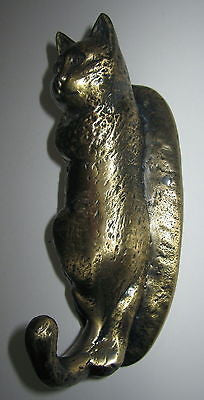 Cat kitten realistic wall hook in brass 1970's very strong 6" tall made in USA