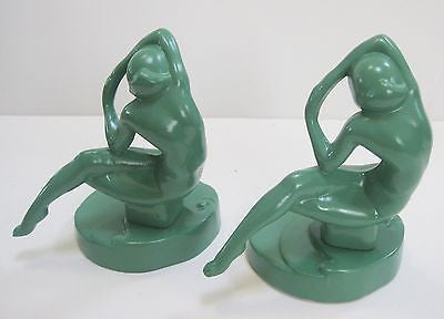Frankart Nymph Kneeling -Bookends Art Deco Greenie finish all metal a pair USA