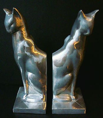 Frankart Sitting Cat Bookends Art Deco a Moderne Polished Aluminum a pair USA