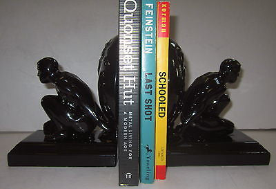 Frankart Style Atlas Male Bookends Art Deco-Very Heavy, all Black- GAY Interest