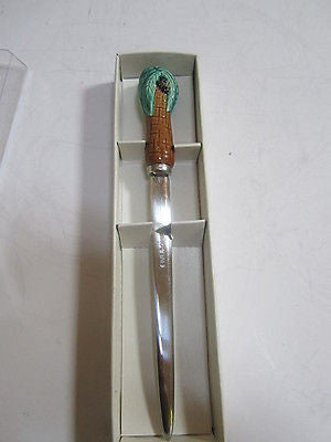 PALM TREE Letter Opener Ceramic and Stainless Steel 7" TALL 1980's Flamingo